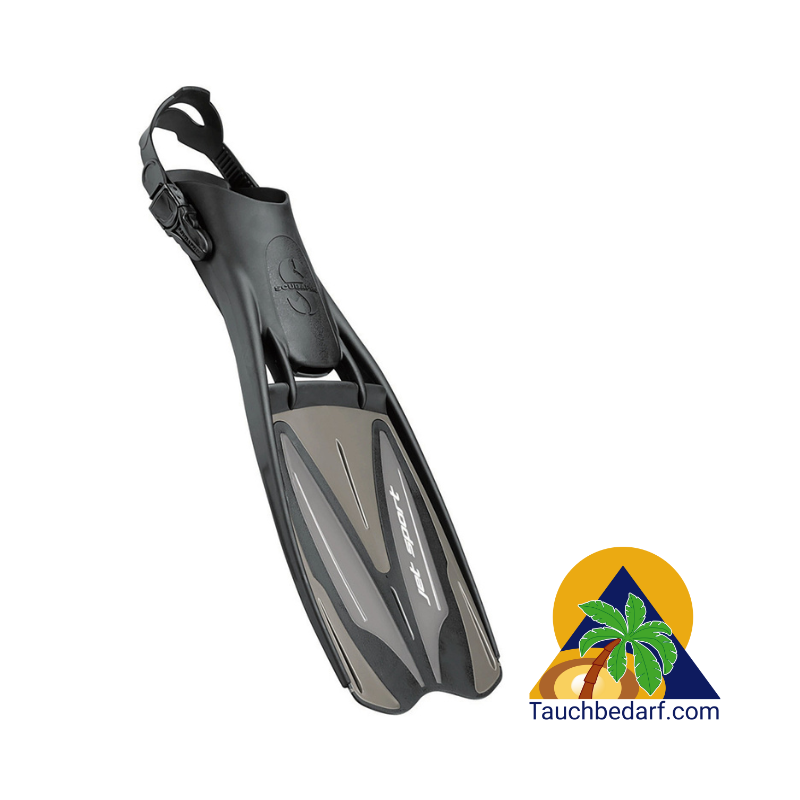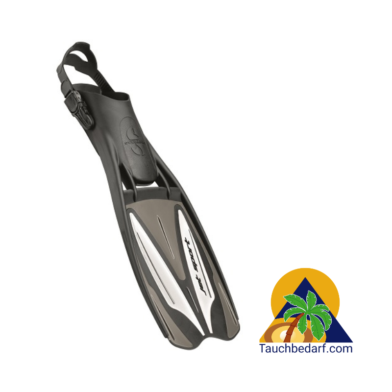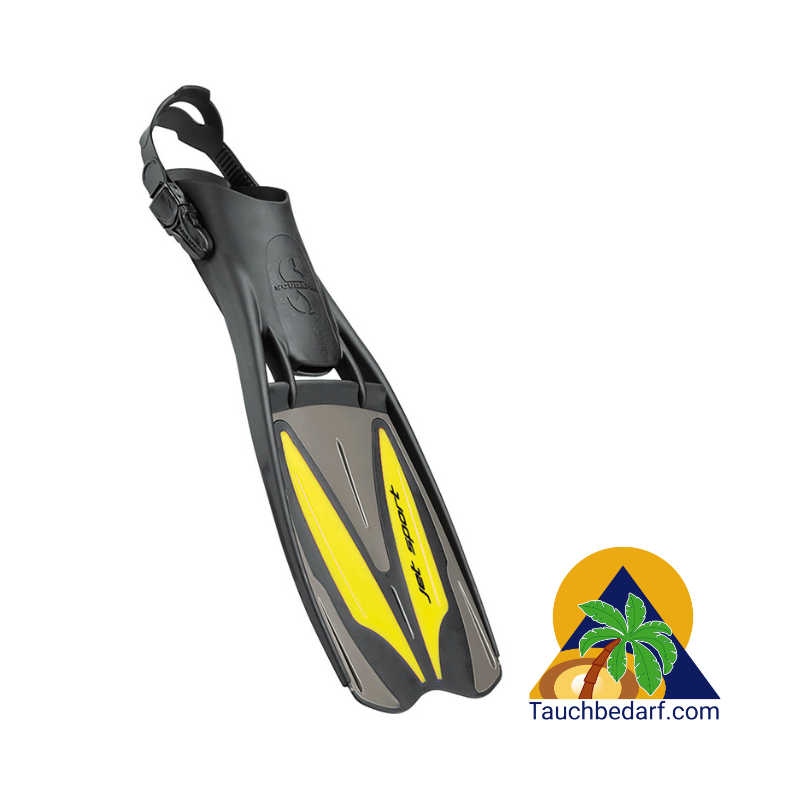 Die Jet Sport Flosse besitzt ein mittelhartes Flossenblatt und ein weiches Gummifußteil. Die Flosse ist wendig und leicht zu manövrieren, ermöglicht effektive Frosch- und Delfinbeinschläge. Sie besitzt ein sehr ausgewogenes Verhältnis zwischen Preis, Leistung und Komfort.