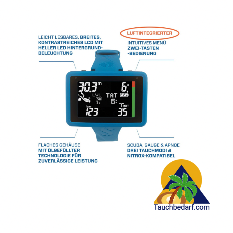 Der LUNA 2.0 ist mit einem großen, kontrastreichen schwarz-weiß Display und einer hellen LED-Hintergrundbeleuchtung ausgestattet. Seine Luftintegrationsfunktion ermöglicht dir die einfache Überwachung des Flaschendrucks sowie die Anzeige der verbleibenden Grundzeit (RBT) und ermöglicht die Berücksichtigung deines Luftverbrauchs bei der Dekompressionsberechnung. Mit Smart+ Pro Sender für schlauchlose Luftintegration. Damit wird die Ablesbarkeit deiner Tauchdaten leichter und komfortabler als je zuvor.