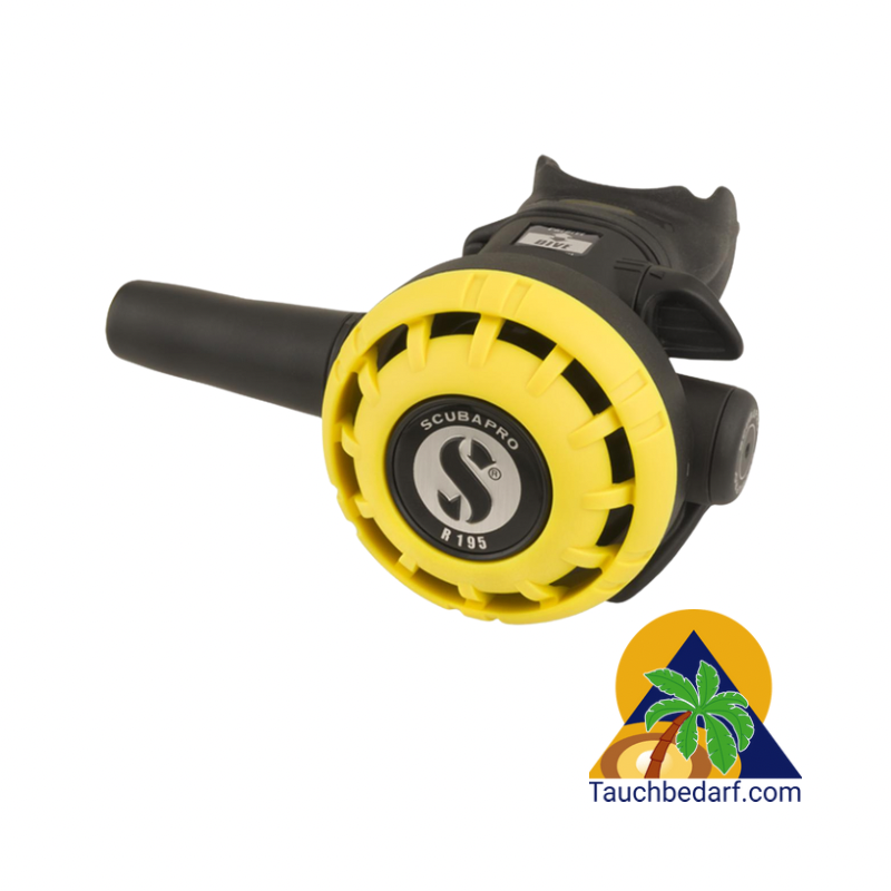 Alle Vorteile und Funktionen des R195 in einer Octopusversion, ausgestattet mit einem markanten gelben Frontcover und einem 1 m langen gelben ND-Schlauch.