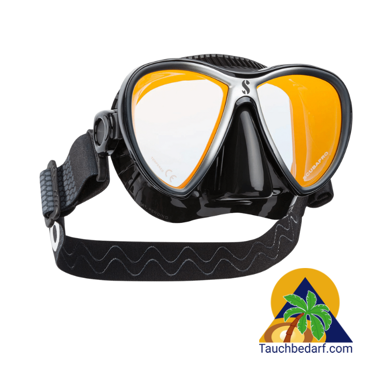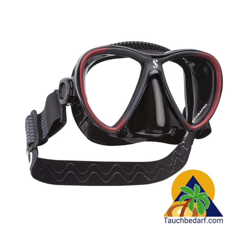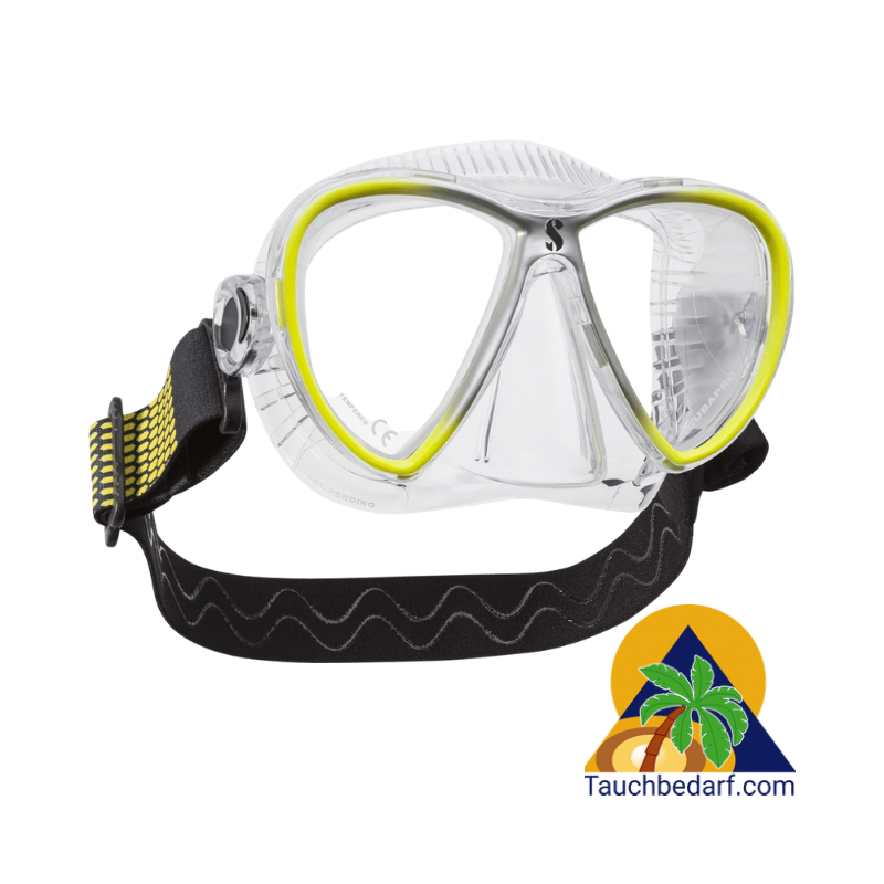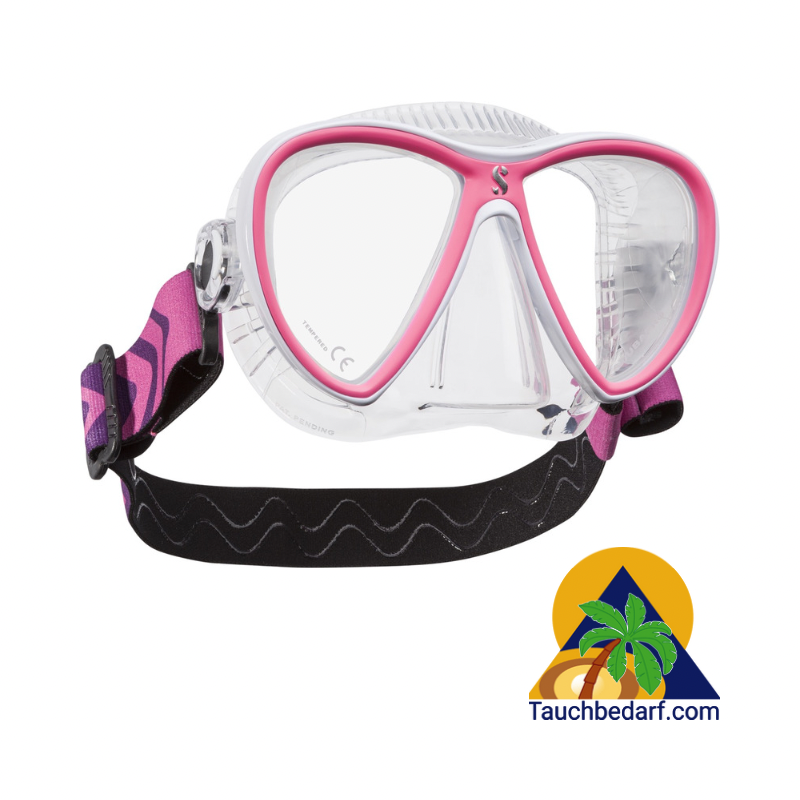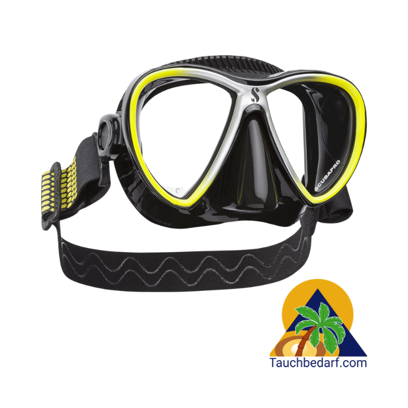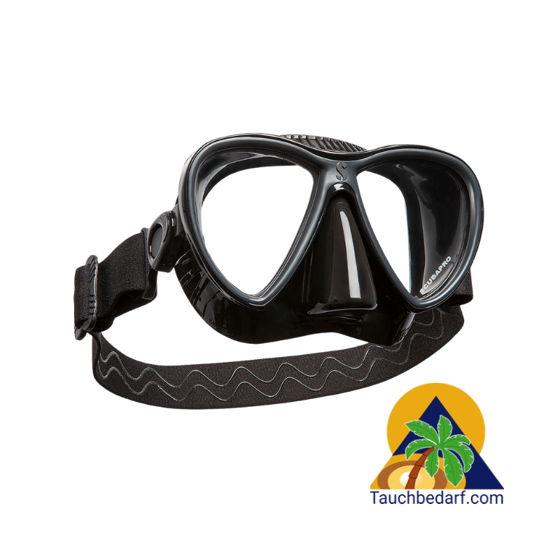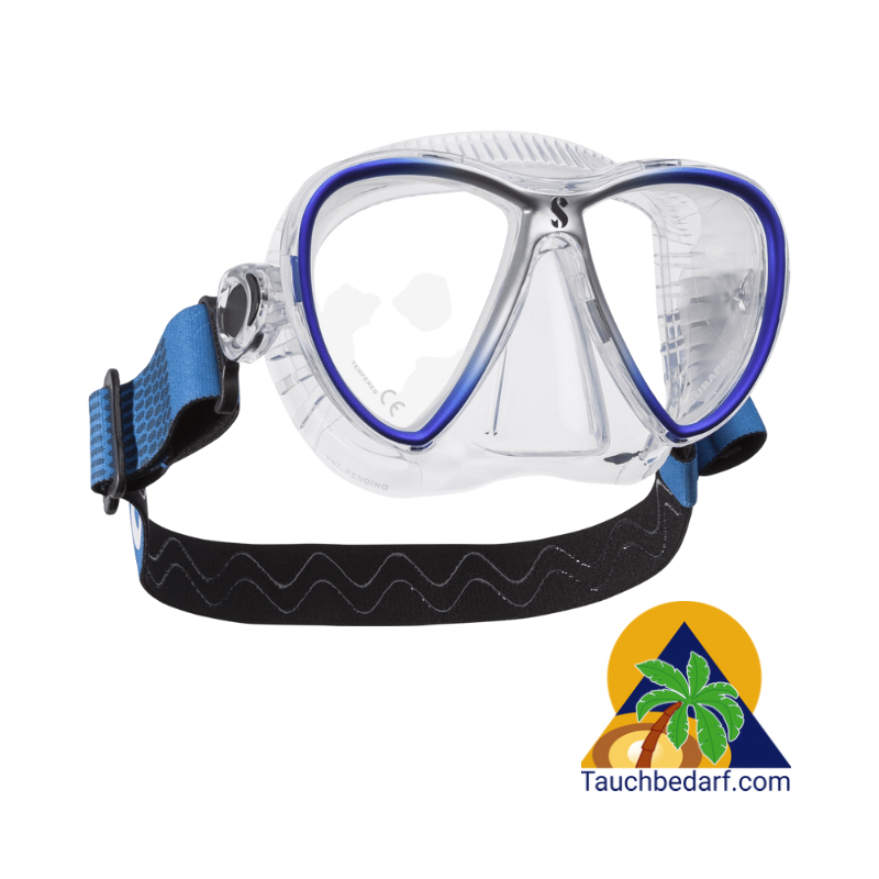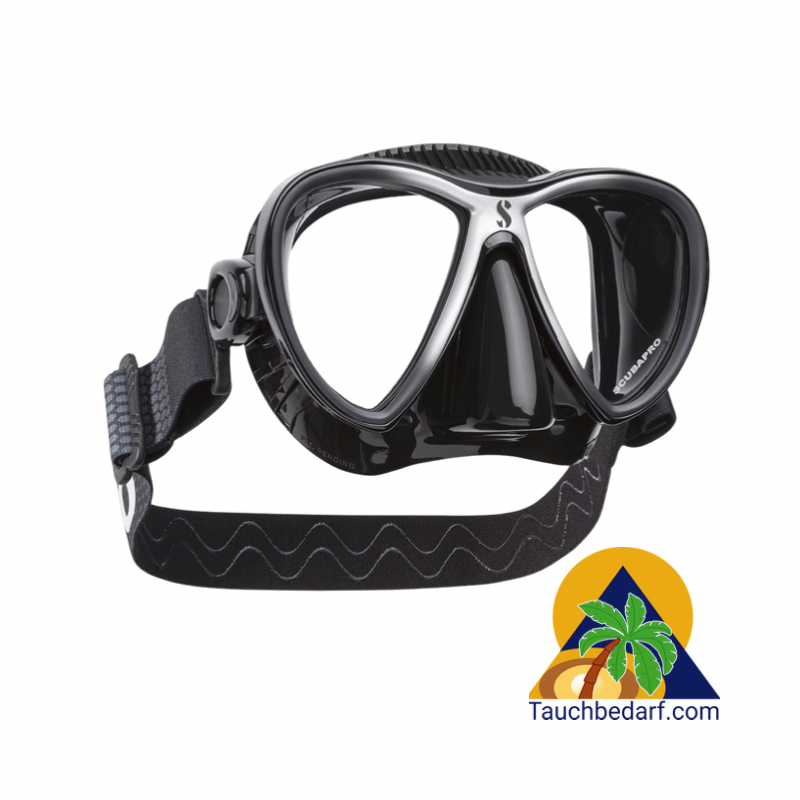 Diese effiziente Kombination bietet eine bequeme Passform für eine Vielzahl von Gesichtsformen sowie eine zuverlässige Abdichtung gegen das Eindringen von Wasser. Das Zweiglas-Design hat ein geringes Volumen und bietet trotzdem ein breites Sichtfeld.