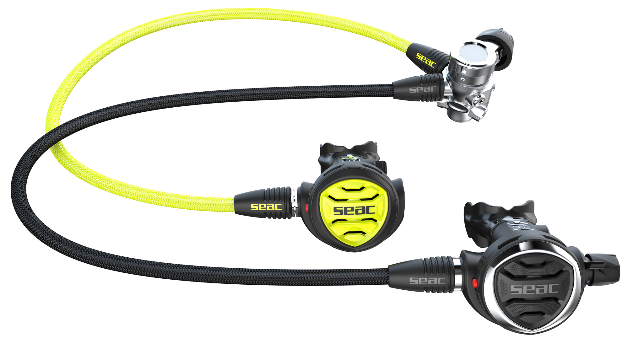 - Der brandneue Zwei-Material-Schlauchschutz hebt die Marke SEAC hervor und verleiht zusätzliche Stabilität. Er ist in Durchmesser und Länge neu gestaltet, um ein Abknicken der MD-Schläuche zu vermeiden, und sorgt für eine optimierte und ergonomische Führung der MD-Schläuche.