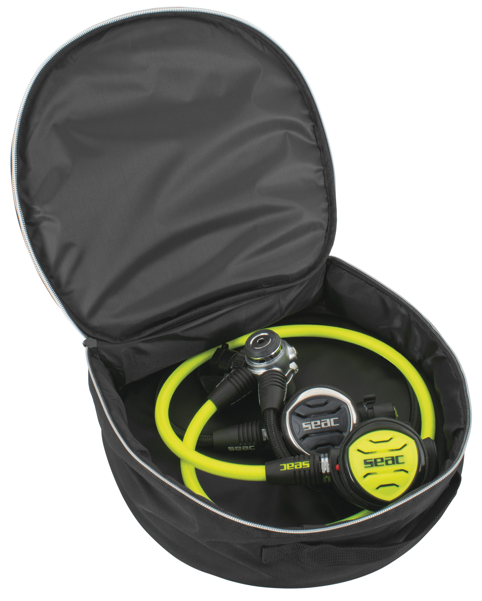 Komplett mit einem brandneuen, halbstarren, vorgeformten Koffer aus äußerst. Widerstandsfähigem Gewebe für einen hervorragenden Schutz des Atemreglers beim Transport.