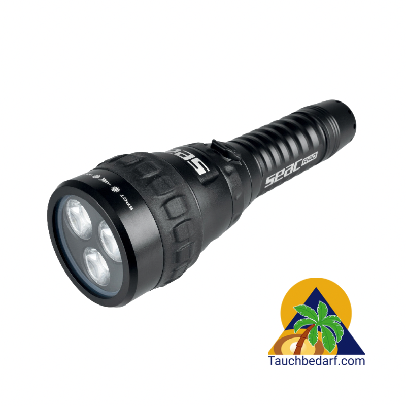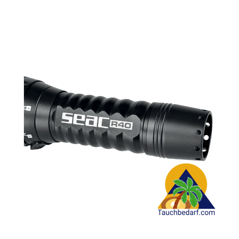 Seac R40 ist eine hochfeste Aluminium-Tauchlampe mit gehärteten optischen Glaslinsen und wasserdichter NBR-O-Ring-Dichtung. Der Lichtstrahl hat 3 CREE XPL-LEDs, mit einstellbarem Winkel von 12° bis 75°. Die Lichtintensität ist auch durch ein- oder mehrmaliges Drücken des Schalters einstellbar. Die Brenndauer reicht von bis zu 1 Stunde und 15 Minuten bei maximaler Leistung, gleich 2300 Lumen, bis zu 5 Stunden bei minimaler Leistung. Die Tauchlampe wird von einem 5400 mAh 26800 Lithium-Ionen-Akku angetrieben und wird über Micro-USB aufgeladen. Eine rot/grüne LED-Anzeige macht es einfach, den Ladezustand der Batterie zu überprüfen. Der elektromagnetische Schalter verfügt über eine Sicherheitssperre, die ein versehentliches Einschalten verhindert. Länge: 206 mm. Gewicht: 594 gr. Kopfdurchmesser: 62 mm.